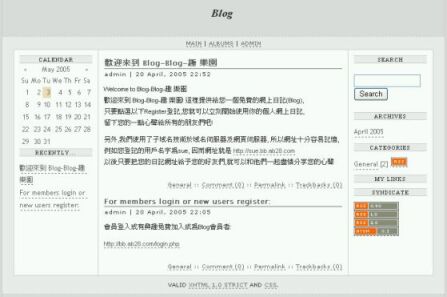 近年冒起的網上日記,基於其容易使用及用 家無須學習繁複的程式碼,亦隨時隨地可修 改或新增最新消息,所以極受用者歡迎, 若你不止單單想使用Blog的話,而更想升遷 為Blog Provider(網上日記供應商)可隨時 聯絡我們,實現你的理想 註:此網上日記支援RSS,所以可隨時留下 最新消息給你所有的朋友們,只要他們 的電腦支援RSS,所有朋友上網後都會收到 你的最新消息