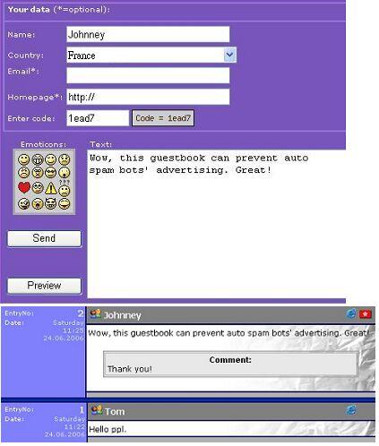 GuestBook with anti-auto-spam-bot 客戶留言板(有防止自動濫發廣告留言程式功能)
